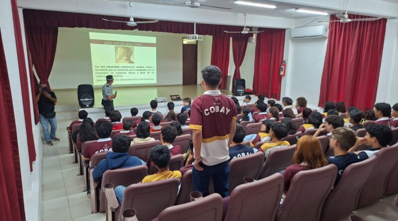 CxuNews / En cumplimiento de la Estrategia Nacional de Seguridad Pública 2024-2030, personal de la Guardia Nacional impartió pláticas sobre prevención de adicciones a estudiantes en una escuela de nivel medio superior en Yucatán.